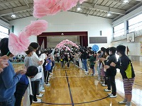 28日は、6年生を送る会でした。今年は感染症拡大防止の観点から、三部に分けて対面で行いました。第1部は1,2年生でした。1年生の『いっしょにやって!6年生』では、電車ごっこのほほえましい姿が見られたりしました。「♬ありがとうの花」もとても良かったです。2年生の『おぼえていますか?』では、6年生が2年生だった2018年の頃に流行ったものとして、タピオカやDA PUMPのUSAなどが紹介されました。USAのステップを見て、6年生もきっと2年生の頃を思い出したでしょう。