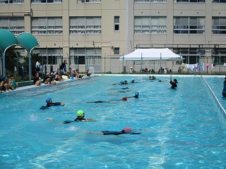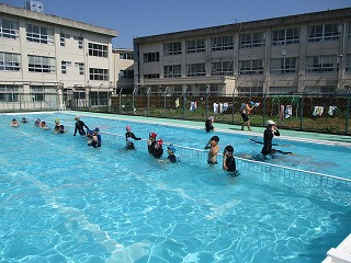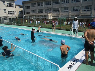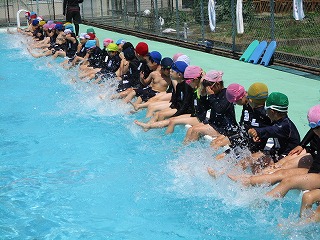 今週の始め(10日)からプールでの学習が始まりました。今週は天候にも恵まれ、どのクラスも何度かプールに入ることができました。週の初めは「冷たい」という声がたくさん聞こえてきましたが、昨日、今日は「気持ちいい」「めっちゃ気持ちよかった」という言葉に変わっていました。