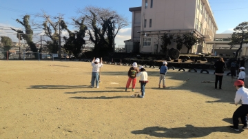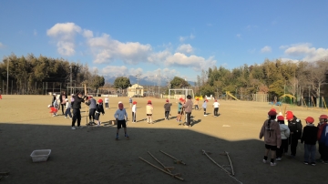 1年生がせいかつの時間に運動場でむかしのあそびを楽しんでいました。竹馬や竹とんぼ等、保育園や幼稚園時代に経験のある子もいれば、初めて体験する子もたくさんいました。竹とんぼがなかなか上に向かって飛ばせない子にコツを教えると、だんだんと上手に飛ばせるようになっていきました。みんなとても楽しそうに取り組んでいました。