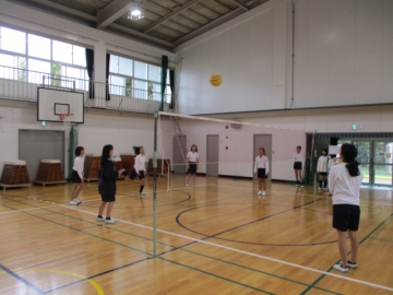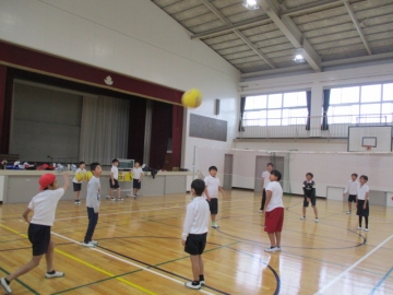 6年生が体育でソフトバレーに取り組んでいます。練習をした後、ゲームを楽しんでいました。バレーボールのルールをもとにして、自分たちでルールを作りながらのゲームです。今日はワンバウンドはOKのルールでのゲームでした。