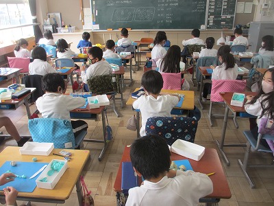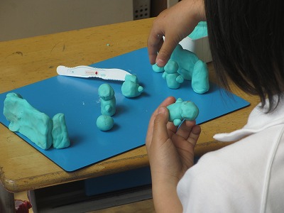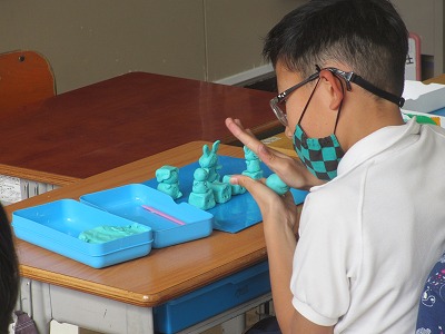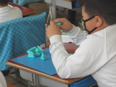 2年生が粘土での作品作りをしていました。3年生になると粘土を使うことはほとんどなくなります。だから、粘土に取り組みました。