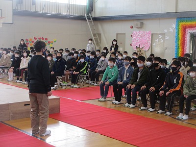 予行練習の後にも、6年生の児童代表から5年生に向けてメッセージが贈られていました。