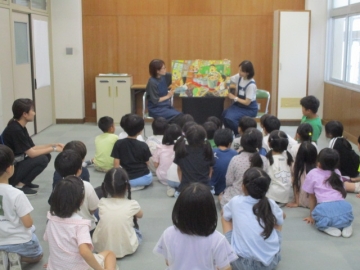 1年生1クラス、2年生2クラスが1時間ずつブックママさんに読み聞かせをしていただきました。 ブックママさんたちが順番に絵本や紙芝居を読んでいくと、子どもたちは絵本の世界にどんどん引き込まれていきました。それもそのはずです、この前もお伝えしたように、ブックママさんたちは子どもたちに楽しんでもらうために練習を重ねています。また、対象の学年に合わせてたくさんの絵本から読む本を選んでくれています。子どもたちにとってとても楽しい1時間となりました。ありがとうございました。