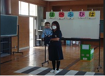 当日は1,2年生がZOOMで指定式の様子を教室で見ました。その後、とみまつ隊による「ミニ交通安全教室」がありました。