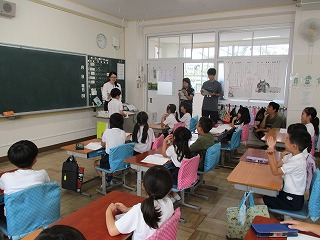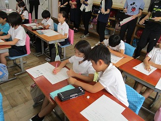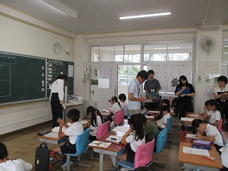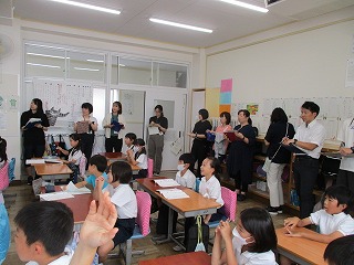 本校では子どもたちが「考える楽しさ」「できる喜び」を感じられる授業づくりのために、教師の授業力の向上に向けて研修を積んでいます。今日は2年1組の算数の授業を参観しました。かっこ「( )」を使って、