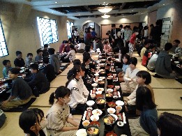 6時30分に起床し、7時からは、大広間で朝食を食べたり、退館式を行ったりしています。保健室を利用する子もなく、みんな元気です。今日も楽しい一日になって欲しいと思っています。