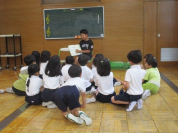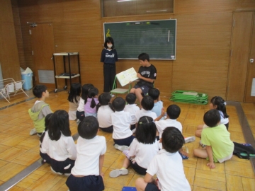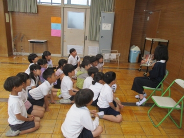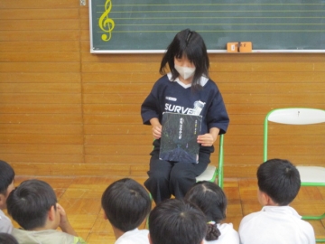川島小では5日~13日まで読書週間です。その取り組みの一つとして図書委員の子どもたちが読み聞かせをしています。今日も25分休みに視聴覚室で2冊の本の読み聞かせをしてくれていました。図書委員の子ども達が声色を変えたりしながら読んでいるのでどんどん本の世界に引き込まれていく子ども達でした