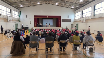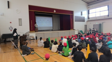 5限目、体育館にて学校保健委員会を行いました。4,5,6年生の児童と学校医、学校歯科医、学校薬剤師の先生、コミュニティスクールの方々にも参加していただいての委員会となりました。テーマは「自分の目 大切にしてる?」~目について考えながら自分の生活を見直してみよう~でした。今日の発表の中心は保健委員のみなさんです。今日の発表のために前期と後期の保健委員はたくさんの準備をしてくれていました。最初は視力についての話、その後ゲームやスマホの使用時間等の話をクイズを入れながらわかりやすく発表していきました。最後に学校医、学校歯科医、学校薬剤師の先生から一言ずつ日々の生活に関わってのアドバイスをいただきました。こういった機会を通して、少しでも子どもたちが健康への意識が高まってくれることを期待しています。