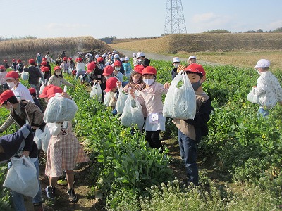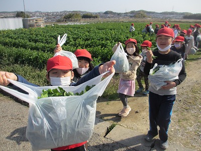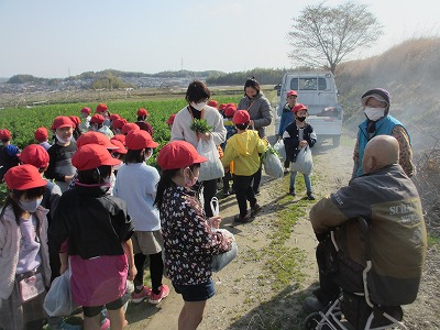 今日、学校近くに菜畑をお持ちの森川さんのご厚意で、なばな摘みをさせていただきました。コロナでどこにも行けない子どもたちに