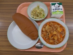 黒糖パン 牛乳 鶏肉のバーベキューソース煮 マカロニサラダ