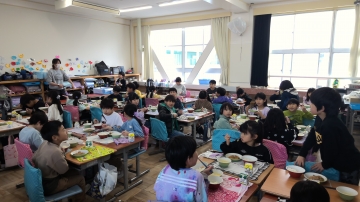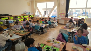 今日で今年度の給食が終了です。毎日おいしい給食を作っていただいた方々に感謝するとともに、みんなおいしそうに食べていました。