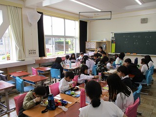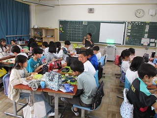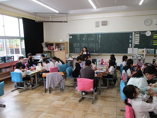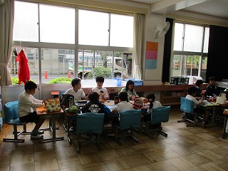 残念ながら本日予定していた遠足は雨天のため中止となってしまいました。しかし、4限後は各クラスではお弁当を楽しむ姿がありました。また、1年生と6年生は事前にグループ分けがしてあったこともあり、教室を移動して1・6年生のグループでお弁当を食べていました。朝早くからお弁当の準備ありがとうございました。