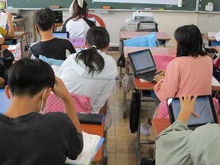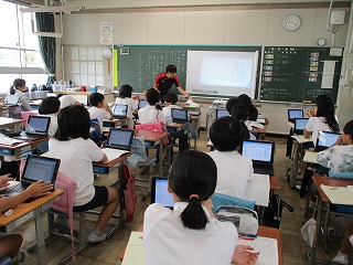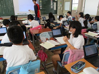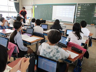 6年生が国語で「風切るつばさ」を学習しています。登場人物について個人で書き込んでいき、それをもとに友だちと意見交換をしていました。タブレットを覗いてみると、たくさんの気づきや考えが書き込まれていました。