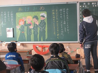 学級もあり、教室は「正月」の雰囲気にあふれていました。