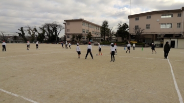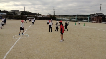 5年生の体育でサッカーに取り組んでいました。まだまだ足でボールを扱うのは慣れていない子どもたち、なかなか思うような方向へボールを蹴ることができません。あと数メートルでゴールという場面でも、思ってもいない方向へ蹴ってしまい悔しがる姿もありました。