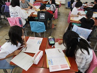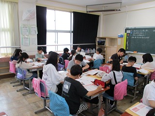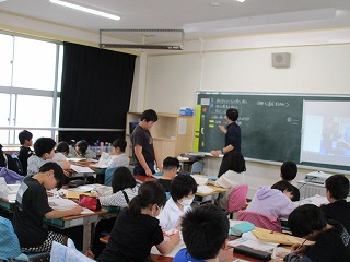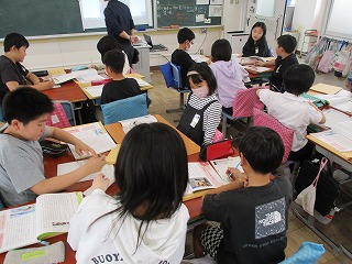 5年生が道徳で「みんなといっしょに前へ、前へ」という教材で学習を進めていました。日本を代表する競泳選手の池江璃花子さんの生き方、考え方をもとに、自分の思いをクラスで交流し考え合っていました。