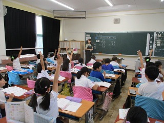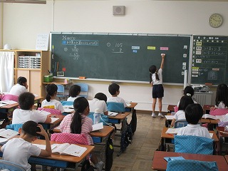 2年生がひき算のひっ算を学習していました。繰り下がりあるひっ算の仕方を一生懸命に考え、教え合っている姿がありました。がんばれ2年生。