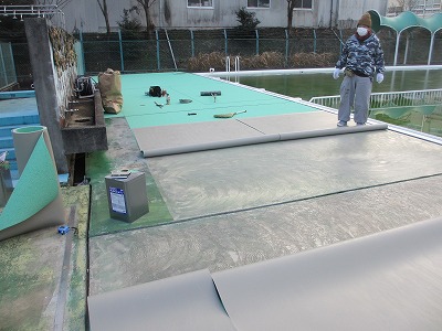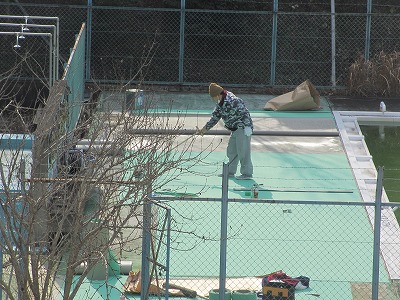 今年度は新型コロナの影響で水泳の授業ができませんでしたが、来年度の水泳の授業に備えて、プール床面の