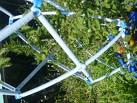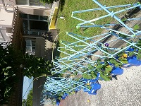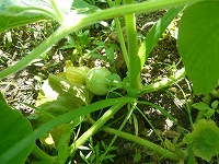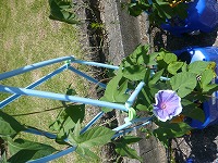 1年生のアサガオはぐんぐん伸びて、つるが1メートルちかくになってきました。そして中には、花が咲いているものもでてきました。2年生の野菜も育っています。みんないつも水やりを頑張っています。あおぞらのカボチャも順調です。