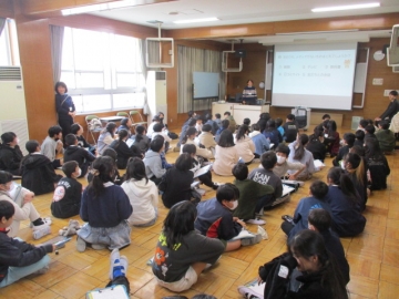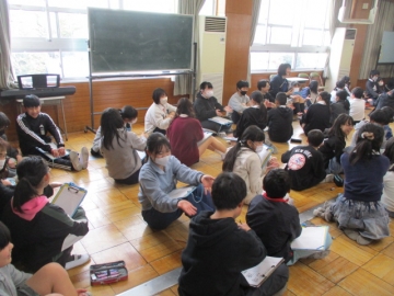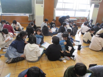「誰かを傷つけないためにできること」をテーマに、人権や差別について考え合いました。一人ひとりが持っている大切な人権、それは「きずつけることも きずつけられることもあってはならない」との言葉には子どもたちも大きくうなずいていました。また、メディアリテラシーやいじめについても友だちと意見を交わし、自分の生き方やいじめや差別をなくすためにできること、やっていきたいこと等を考え合いました。