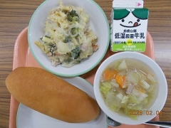 米粉パン 牛乳 豆乳グラタン 野菜スープ