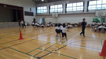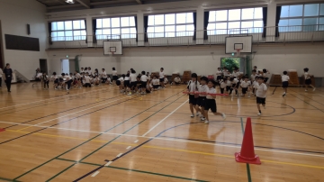 3年生は団体競技の練習でした。横に並ぶ4人で相談してより早く動けるように工夫がされることでしょう。