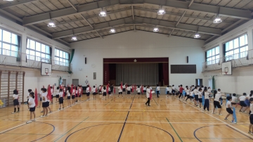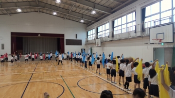 来週の土曜日の運動会に向けて、練習が始まっています。今日は雨のため運動場が使えず、各学年とも体育館で活動していました。