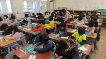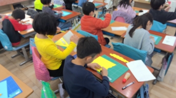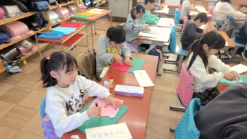 2年生が図工でカッターナイフの使い方を学習しました。安全に使うための確認を学習してからいよいよ切る練習をします。最初は恐る恐る使っているようでしたが、慣れてくるとジグザグに切ったり、くりぬいたりしてできた形を見せ合ったりしていました。安全に気を付けてうまく使えるといいですね。