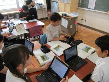6年生の国語の授業の様子です。「イースター島にはなぜ森林がないのか」という教材文から、論の進め方について学習していました。文章の構成を学ぶとともに自分の表現力を高めるための学習です。自分で考えたりグループで相談したりと、自分なりの考えを深めていました。