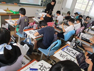 毛筆で「成長」に取り組んでいました。北校舎の3階を歩いていてあまりにも静かだったので、誰もいないのかなと思って教室を覗くと、すごく集中して書いている姿が目に入ってきました。さすが5年生。