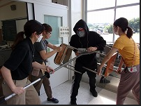 今日の5限目は、不審者対応訓練でした。1年1組に不審者が入ったとの想定で行いました。子どもたちの安全を確保しながら、不審者役の教員を、1・3年の教員が中心になって取り押さえました。その後、南校舎も児童を含めて全員が運動場に避難しました。避難したあとは、ほっとしたのか低学年を中心に話し声が聞こえましたが、高学年は最後までしっかりと訓練することができました。