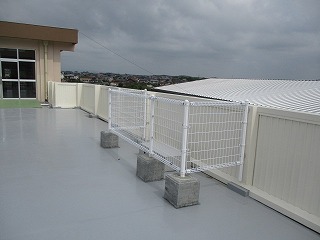 工事の関係で壁の手前に踏み台のような台ができたために、乗らないために白い柵を作っていました。