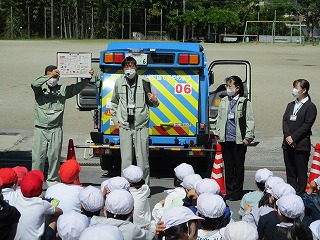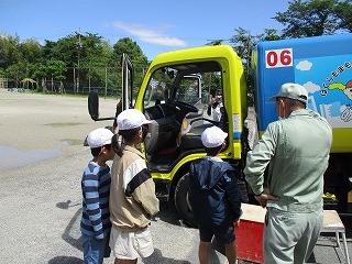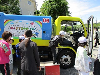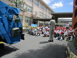 最後にパッカー車の見学もしました。質問タイムでは次から次へと質問するなど、子どもたちの意欲的に学習する姿がありました。