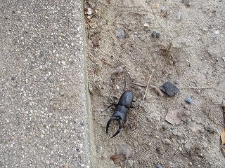 1年生が休み時間に外あそびをしている間に、ノコギリクワガタを発見しました。「さわらせて」「持ちたい」等、授業が始まる前、大いに盛り上がっていました。最後は近くの林に逃がしてあげることになりました。