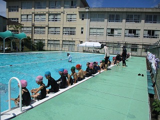 今日からプールでの学習が始まりました。朝、登校してくる子どもたちも「今日は〇限目にプール」と嬉しそうにプールバックをもって来ていました。