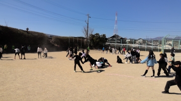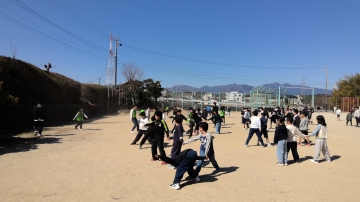 昨日に引き続き、児童会主催のだるまさんが転んだ(2・4年生)が行われました。参加した2・4年生が手をつなぎ、前進してはストップを繰り返しとても楽しそうでした。児童会のみなさん、楽しい企画をありがとう。