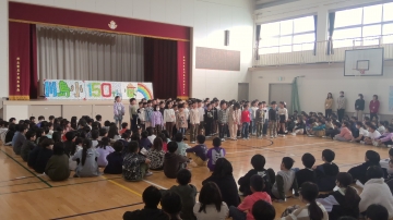 元気いっぱいに校歌を歌うことから集会が始まりました。その後、各学年が学習していることを順に発表していきました。その発表の中には、登下校でお世話になっている方々への感謝の言葉、川島地区が大切にしている「桜」の保全活動をしている方々への言葉、地域の方々へインタビューしたことを報告する学年、歴史を少し振り返りクイズをする学年等、学習したことを工夫を凝らして発表していきました。どの学年も素敵な発表でした。最後は6年生の実行委員から川島小学校クイズが出され、大いに盛り上がりました。