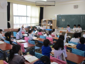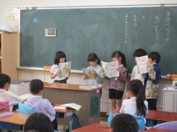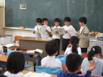 2年生が国語「風のゆうびんやさん」で音読発表会をしていました。グループごとに音読を行い、聞いていた子たちからたくさんの感想をもらっていました。声の大きさ、読む速さ等、たくさんの感想に発表者はにっこりでした。