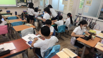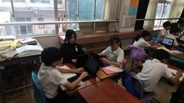 5年生は国語で「注文の多い料理店」を学習しています。今日は課題について、グループや個人で考え合っている場面でした。ノートやタブレットに考えをまとめ、この後みんなで意見を共有するそうです。