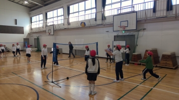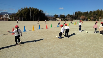 運動場ではカラーコーン、体育館ではネット等たくさんの準備物を素早く準備し、楽しそうに活動していました。