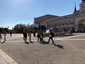 子どもたちはスペイン村を思う存分、楽しんでいます。三重小、八郷西小、泊山小、などと一緒です。他の学校もたくさん来ていますが、乗り物もなんとか乗れているようです。