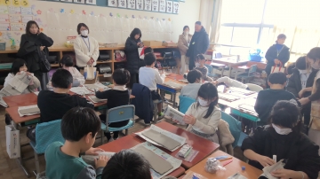 4年生は2,3限目に陶芸教室を行いました。ばんこの里会館より講師の方に来ていただき、ランプシェード作りに取り組みました。体育館で作り方の説明を聞いた後、各教室にて作業に取りかかりました。板状になった粘土を筒にした後、穴を開けたり模様を描いたりと、自分だけの作品を作り上げていました。