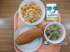 黒糖パン 牛乳 きのこ入りミートグラタン 野菜スープ