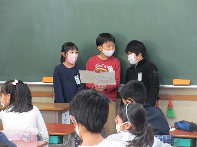 3年生も「お楽しみ会」をしていました。みんなが、自分でやりたいことを発表しました。クイズなどみんなで楽しめることも