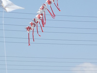 この連凧が、子どもたちの心に火をつけました 少しずつ風も吹いてきました