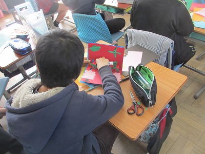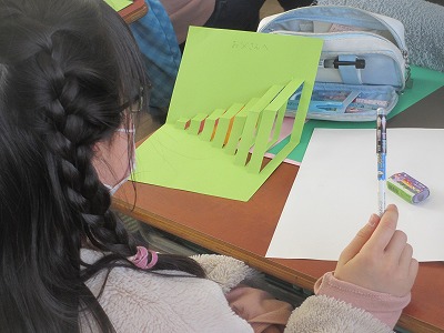 4年生は、とびだすカードを作っていました。子どもによって違った工夫がされていて、作業を見ているだけでも楽しくなりました。
