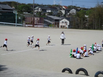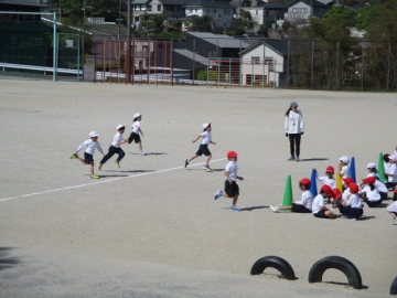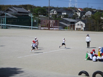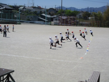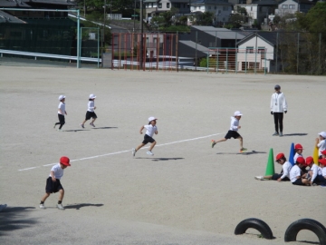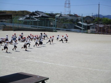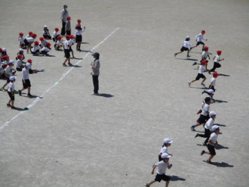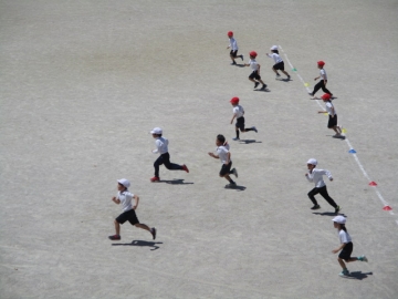 1年生も2年生も体育では「走る運動」を楽しんでいます。短い距離を友だちと競走しながら、自分の力を精一杯出して走ることをねらっています。みんな楽しんで取り組んでいました。