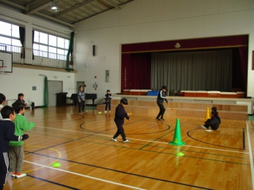 3年生が体育館に集まり、6年生を送る会の練習をしていました。3年生は6年生と一緒に行うゲームとダンスを行うそうです。