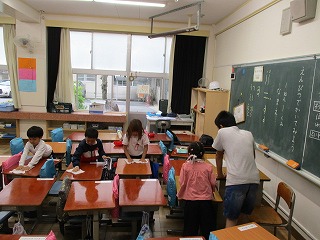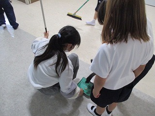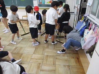 今日から1年生が給食後の掃除を始めました。6年生に手伝ってもらいながら教室や廊下の掃除に取り組みました。やさしく教える6年生、それを聞いて一生懸命に掃除をする1年生、とても上手に掃除をしていました。