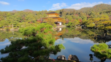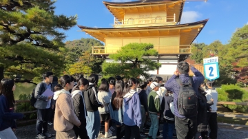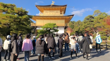 朝一番に金閣の見学に向かいました。人もまだそれほど多くなく、静かな金閣の朝を見ることができました。こどもたちは金色に輝く金閣を見て感動していました。